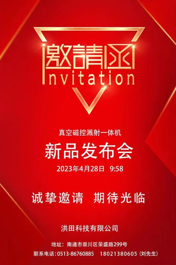 কোটা টেকনোলজি কোটা টেকনোলজির কারখানায় (জিয়াংসু) কোং, লিমিটেড (নং 299, রংশেং রোড, চংকুয়ান জেলা, ন্যান্টং জেলা, ন্যান্টং জেলা, ন্যান্টং সিটি) শুক্রবার, এপ্রিল 28, 2023 এ এবং সাইনসেন্টের সাথে একত্রে আমন্ত্রিত হিসাবে ড্যাক্টরিতে ভ্যাকুয়াম ম্যাগনেট্রন স্পটারিং ইন্টিগ্রেটেড মেশিনের জন্য একটি নতুন পণ্য প্রবর্তন সম্মেলন করার পরিকল্পনা করেছে। সম্মেলনে অংশ নিতে প্রতিষ্ঠানগুলি .