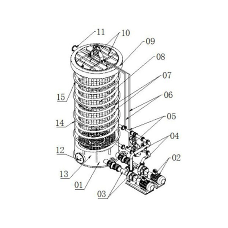 একটি উচ্চ-দক্ষতার তামা দ্রবীভূত ট্যাঙ্কের সমন্বয়ে একটি তামা দ্রবীভূত ট্যাঙ্ক বডি রয়েছে, যেখানে তামা দ্রবীভূত ট্যাঙ্কের দেহে একটি ট্যাঙ্ক শীর্ষ, ট্যাঙ্কের শীর্ষে অবস্থিত একটি ট্যাঙ্ক কভার এবং তামা দ্রবীভূত ট্যাঙ্ক বডিটির একটি বাহ্যিক পাইপলাইনের সাথে সংযুক্ত একটি তরল বিতরণ সিস্টেম রয়েছে; তরল ডেলিভারি সিস্টেমে একটি অ্যাসিড-প্রতিরোধী প্রচলন পাম্প, একটি তরল ইনলেট পাইপলাইন, একটি তরল আউটলেট পাইপলাইন, একটি তরল অক্সিজেন ইনজেকশন মিক্সার এবং একটি এয়ার ইনলেট পাইপলাইন রয়েছে; একটি তামা দ্রবীভূত ডিভাইসটি তামা দ্রবীভূত ট্যাঙ্কের দেহের ভিতরে সাজানো হয়; তামা দ্রবীভূত ডিভাইসে একটি মাল্টি-লেয়ার ঘূর্ণি প্রবাহ চ্যানেল, একটি গ্রিড সিলিন্ডার, একটি এয়ার এক্সস্টেস্ট পোর্ট, একটি ম্যানহোল ডিভাইস, একটি নীচের তরল স্রাব গর্ত, একটি মাঝারি তরল আউটলেট গর্ত এবং একটি উপরের তরল পুনরায় পরিশোধের গর্ত রয়েছে। অ্যাসিড-প্রতিরোধী সঞ্চালন পাম্পের তরল ইনলেটটি তামা দ্রবীভূত ট্যাঙ্ক বডিটির নীচের অংশের সাথে সংযুক্ত থাকে এবং অ্যাসিড-প্রতিরোধী সঞ্চালন পাম্পের তরল আউটলেট তরল অক্সিজেন ইনজেকশন মিশ্রণকারীর সাথে সংযুক্ত থাকে। অক্সিজেন সমৃদ্ধ বায়ু এবং তামা সালফেট তরল একটি ফেনা প্রবাহ গঠনের জন্য তরল অক্সিজেন ইনজেকশন মিশ্রণকারীর মাধ্যমে সম্পূর্ণ মিশ্রিত করা হয় এবং তারপরে ট্যাঙ্কের দেহের অভ্যন্তরীণ প্রাচীরের মাল্টি-লেয়ার ভার্টেক্স প্রবাহ চ্যানেলের মাধ্যমে ট্যাঙ্ক বডিটিতে একটি ঘূর্ণি প্রবাহ উত্পন্ন হয় এবং তাতে তামাটির মধ্যে একটি বিশাল ঘূর্ণন বাড়ানো, তামাটির মধ্যে একটি বিশাল ঘূর্ণন তৈরি করা হয়, তামা, তাতে একটি বিশাল ঘূর্ণন তৈরি করা হয়, দক্ষতা .